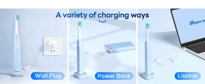 HOME >> PRODUCTS >>Electric Toothbrush >>M306 >> Bymore Electric Toothbrush for Adults,Travel Sonic Toothbrush with 8 Replacement Heads, Ultra Soft Rechargeable Toothbrush Portable Electric Toothbrush for Kids-Blue