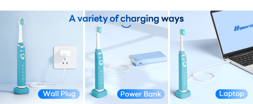 Bymore Electric Toothbrush for Adults,Travel Sonic Toothbrush with 8 Replacement Heads, Ultra Soft Rechargeable Toothbrush Portable Electric Toothbrush for Kids-BlueAbout this item